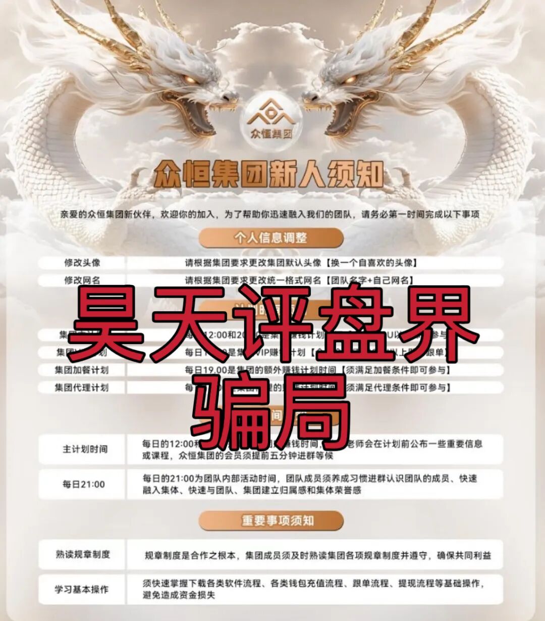 昊天友情提醒:众恒集团交易所合约跟单类资金盘骗局,已经开始单割,典型的一轮圈杀猪盘,看见一定要远离,昊天后面会持续关注!近期知乎,小红书,微博,抖音等app都有冒充昊天的诈骗团伙,除公众号外其他一律不是本人,切勿上当受骗!