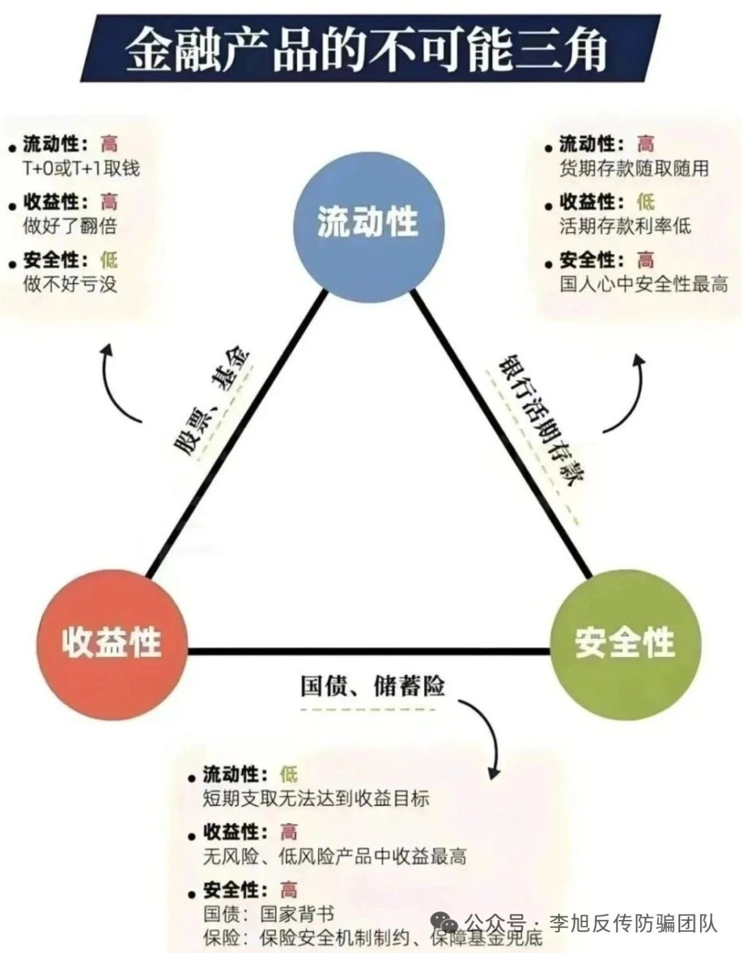 经济学概念中的“不可能三角”定律已经告诉我们:高收益必然伴随高风险,天上不会掉馅饼。