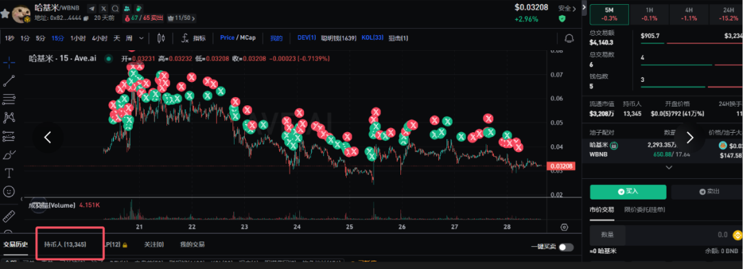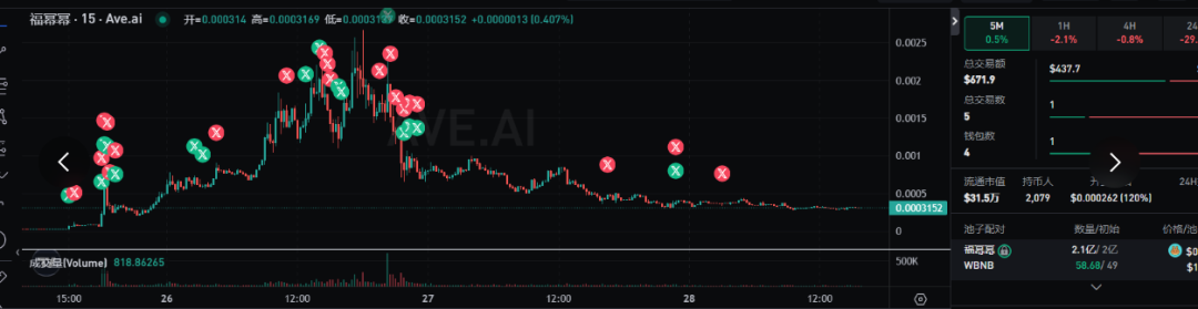 一波暴涨之后就是项目方直接开始砸盘下跌,这种情况下,里面的人根本就出不来的,除了项目方的人,你外人基本上都会亏死。