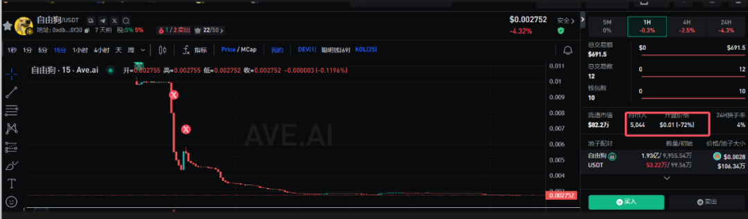 在这场看似繁华的盛宴背后,是一地鸡毛的收割现场。“自由狗”这个号称“反套路”的Meme币,与其他中文Meme币一样,难逃上线即巅峰、随后暴跌的宿命。