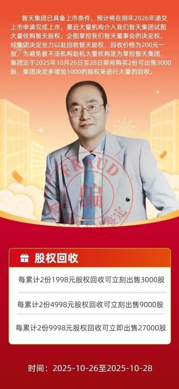 10月下旬起,短短十天时间,就疯狂推出所谓智天集团股权回收、智慧盈、对冲基金、全智能跟投型基金等虚假产品: