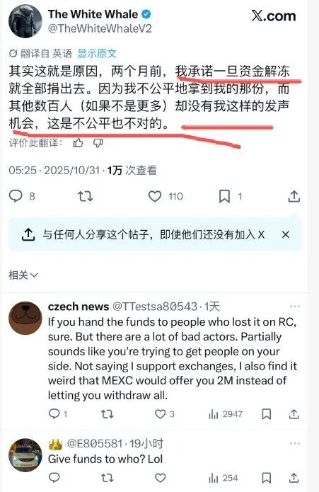 最近事情的起因是:英国有个名叫白鲸的kol在抹茶盈利了300万美元,而抹茶不让提现。