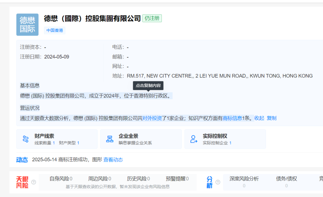 根据推广人员给小诺发的视频讲解材料中提到的,该项目的实控人最开始创建的是“新晃德懋”创建时间在2021年,主要负责提供产品供应。公司成立在新晃,是因为新晃是该公司生产的商品原材料“龙脑”的主产地。然后创建的是“香港德懋”创建时间在2024年5月,最后由香港公司出资控股创建了“怀化德懋”。然后由怀化德懋来实现项目的具体推广。但是在小诺看的项目相关宣传材料中只提到了“香港德懋”。推广者应该是认为在大陆港资企业也算是一种印象背书。