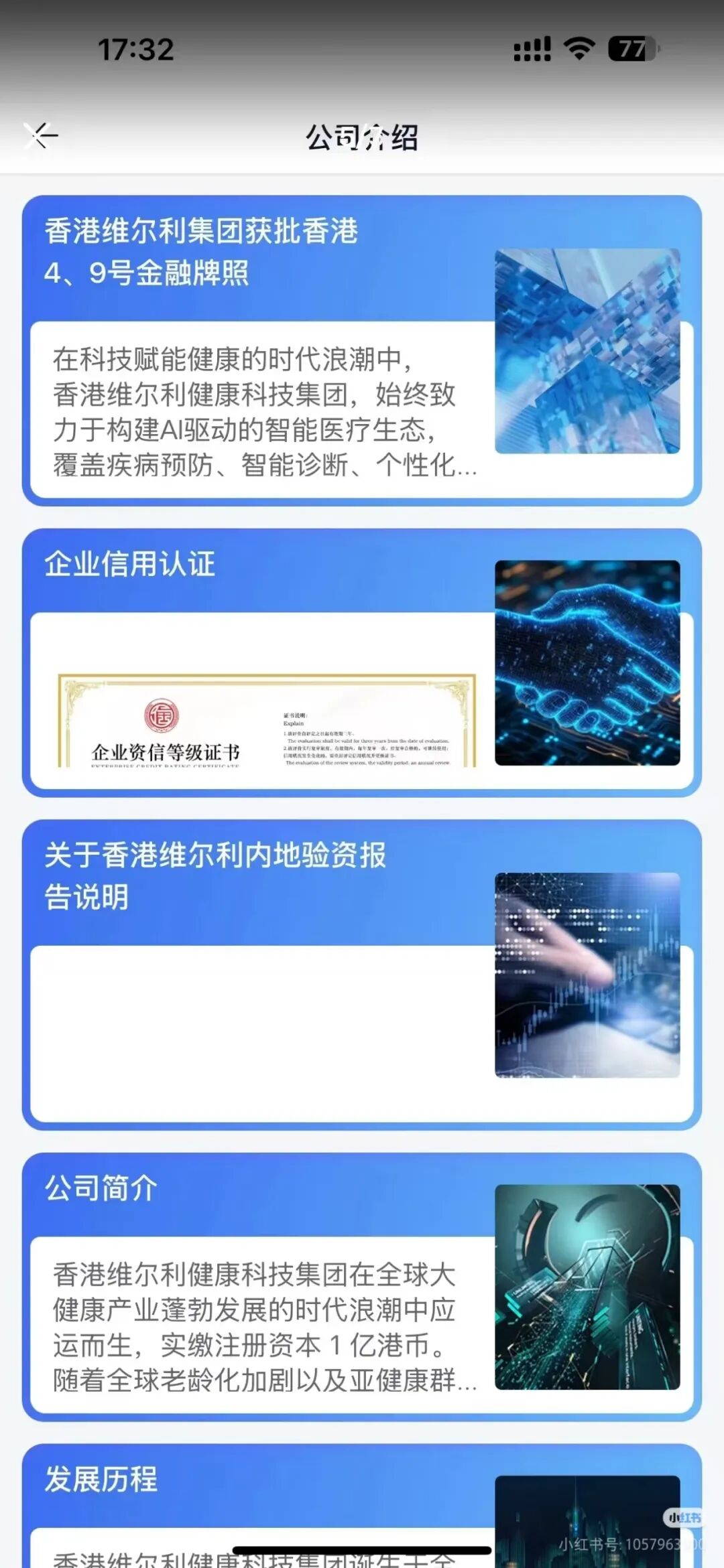 第一,所谓“香港维尔利”,实为彻头彻尾的境外杀猪盘。2023年7月于香港注册空壳公司,10月正式开盘,以“AI医疗”“干细胞疗法”“港股打新”为噱头,构建一套极具迷惑性的科技叙事。平台伪造与A股上市公司合作文件,盗用真实股票代码增强可信度,甚至连所谓“香港总部”照片均为PS合成。药监局、科技部、卫健委等官方渠道均无任何相关项目备案。