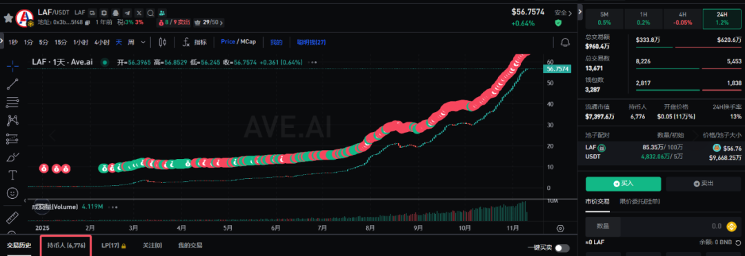 拉菲协议现在是涨到了56美金,里面的人数现在是达到了6700多人。