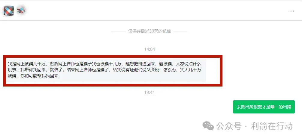 利箭小编提醒:被骗了,要到辖区派出所或者事发地派出所报案,别找网络中能帮助你追回被骗款的人,更不要轻易向身份不明的人交钱,以免上当被骗。