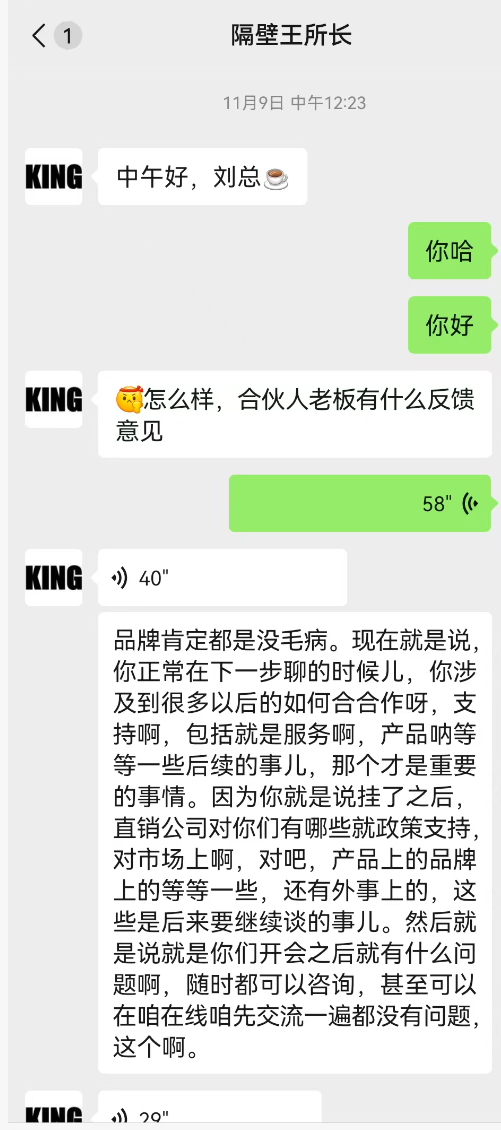 最后的最后,这个自称是东方药林员工的人还强调了最关键的一点,就是“介绍费”。怪不得这个人从公司办公楼下来,到外面接小诺的电话。无非就是怕谈到个人核心利益时被公司其他人听到。小诺问对方需要多少介绍费,对方说无论与哪家直企合作,都需要每月向他支付销售额1%的介绍费。小诺简单算了一下,3000万*1%=30万,12*30万=360万。好家伙,介绍费一年360万,这钱来的也太容易了吧!各位东方药林各品牌的代理,以及底层的消费者们,你看看你们花费的高价保健品,营养品,这钱都花到哪里去了?抛出给直销企业的挂靠费、介绍费,再抛去给团队长层级返利的提成,以及公司自己的利润。你们想想你们最后买的产品还剩下几分成本价值,你们这些吃产品的消费者告诉小诺!那不是一堆垃圾,那是什么?