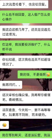 A某表示,随后就联系客户经理,说帮我催,说在审核,24小时就可以到账了,然后我又等了过去48小时还未到账。