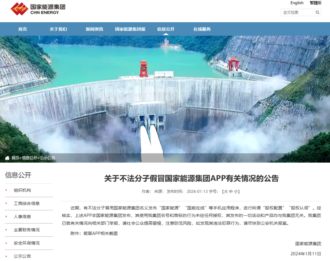 冒充“国家能源集团”推广虚假理财,目前已暂停提现,宣称一个月后恢复,疑似跑路前兆。