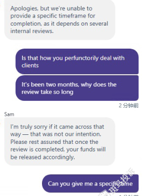 A某表示,现在都快三个月了,找他们网页客服么说是还在内部审查,发邮件也是一样的回复,问他们要本金也不给。A某表示不解,赚的也不多,为什么这都出金难。希望平台尽快出金。