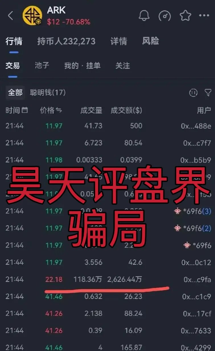 前天晚上ARK操盘手一分钟砸盘70%,后面说什么链上执行,完全只是为了忽悠小白,毕竟在奥林巴斯DAO这种商业模型,币多就是项目方,最终的结果就是高位横盘出货,螺旋式下阴跌直至归零,这不是技术性测试,而是庄家资金出逃,有知情人爆料操盘手在国内,是泉州的,目前联合技术已经开始收割,各位好自为之!