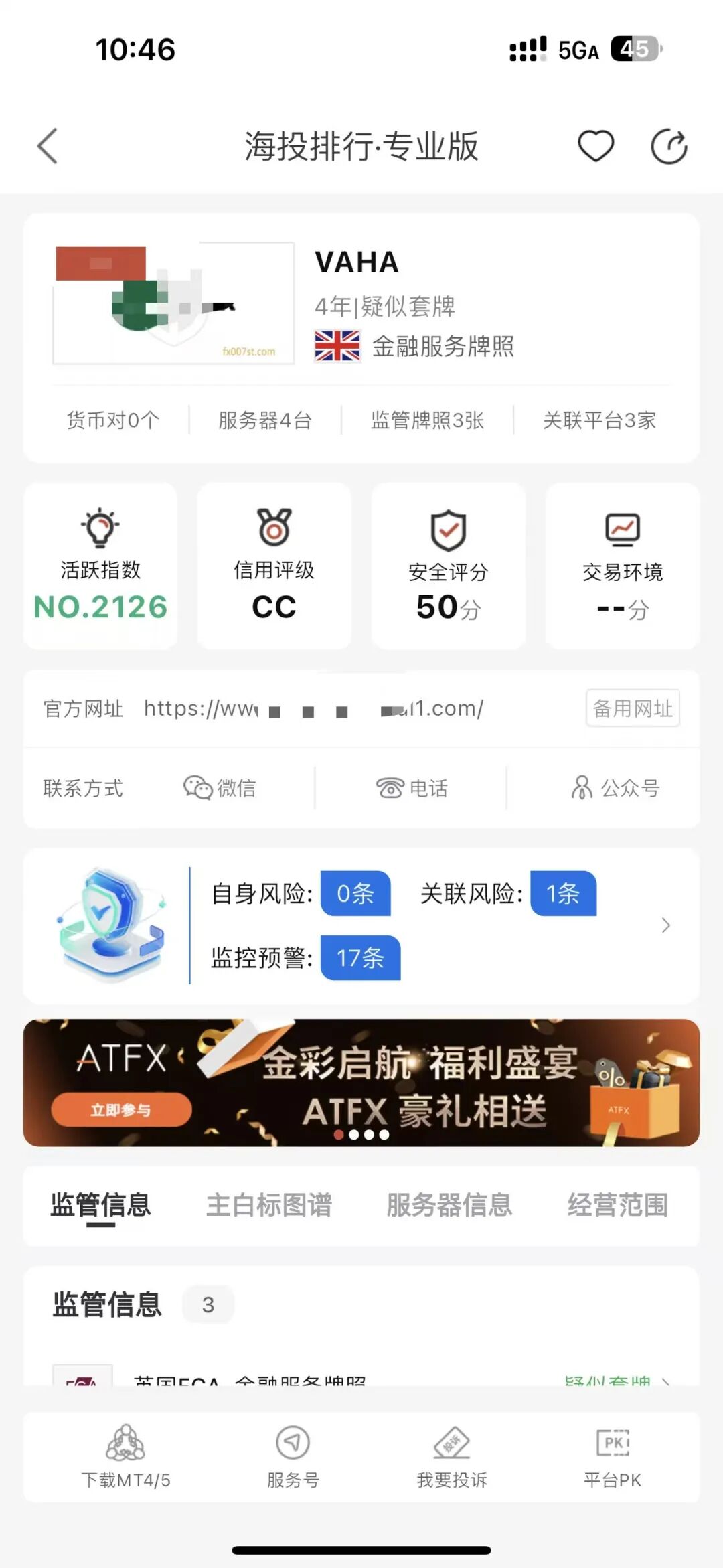 根据第三方外汇平台安全性查询软件海投的数据显示,IXBRO CERS(VAHA)平台排名2126,成立4年,该平台持有3个相关金融监管牌照,但具体情况需要进一步核实。(这一评分仅供参考,投资者在选择平台时应综合考虑多种因素。)