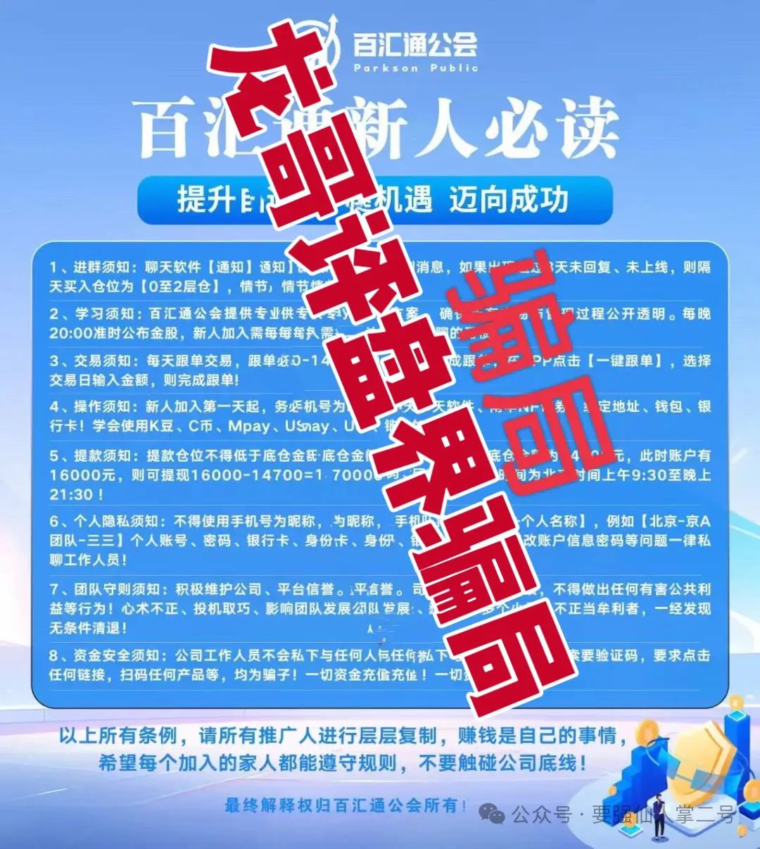 在此提醒广大投资者,务必保持警惕,远离佰宜康(百汇通公会)这类股票跟单资金盘骗局。若已参与其中,应立即停止追加投资,想尽办法尽快提现,并保留好所有与投资相关的证据,以便向警方报案,维护自己的合法权益。