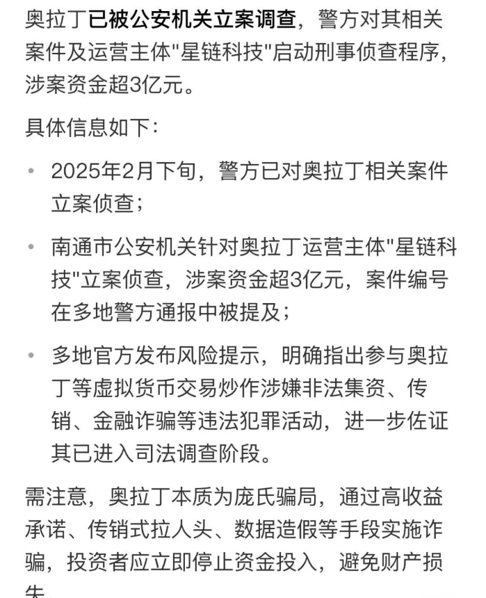 实际上,这一切都是精心设计的骗局。根据江西官方媒体“欧潭融媒”的分析,奥拉丁项目存在涉嫌非法集资、传销及金融诈骗的潜在风险。