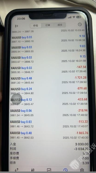 A某表示,10月2日晚上,EA本来只进了4个0.03的单子,大概在3896,3883,3870和3857这几个点位,设置13点补一小单。