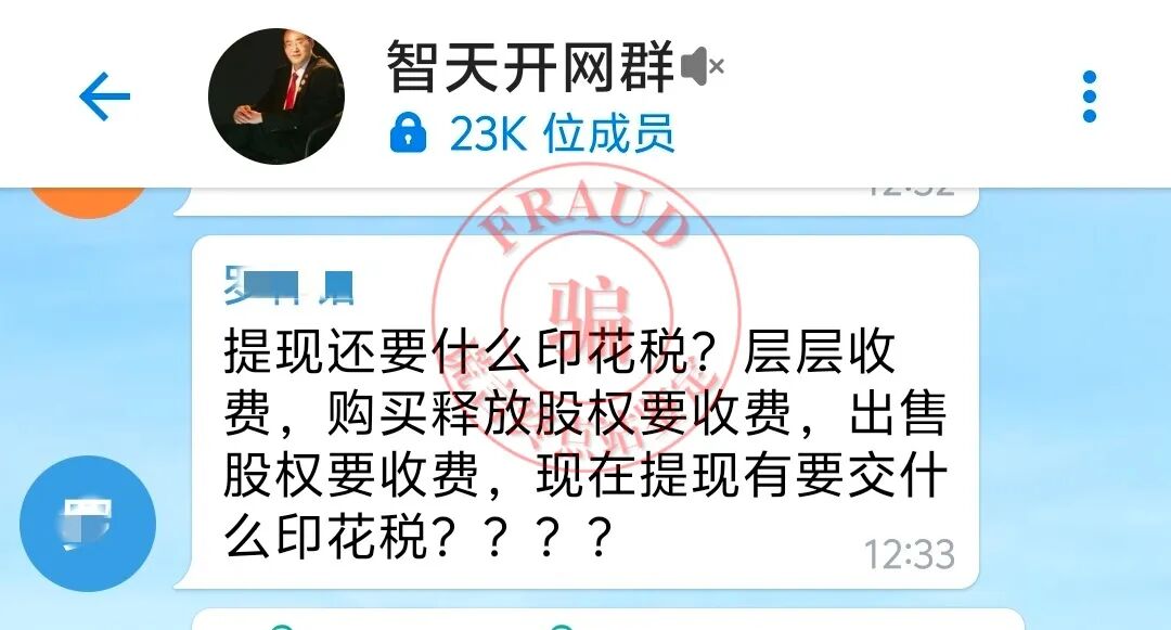 智天交易所是一个境外网络诈骗,从去年5月份以来,每半年一次关网收割,然后又重新上线,开始新一轮收割。如今,已经是第三期骗局了,收割了一波又一波“天家人”。
