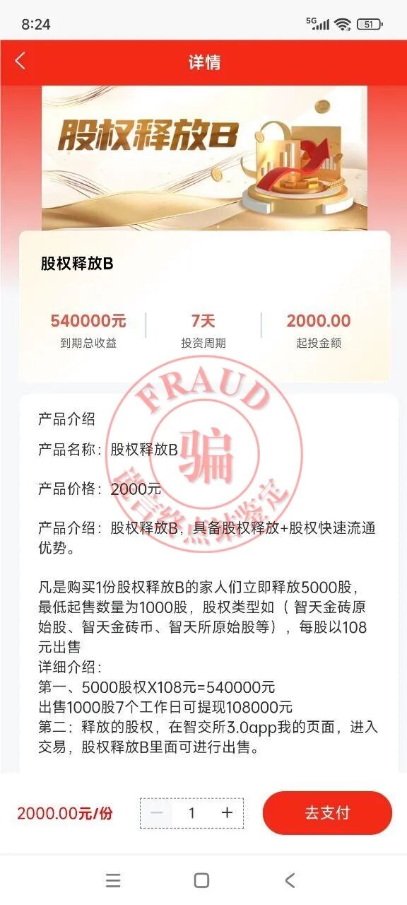 2025年12月4日,智交所骗局推出了一个所谓的“股权释放”,声称花几千元购买这个“股权释放”产品,就可以在十个工作日后兑现几十万到几百万。