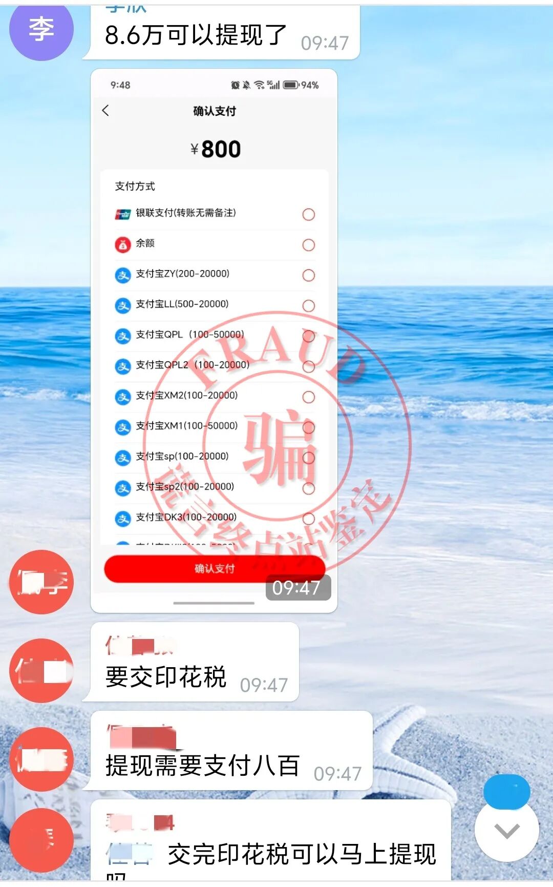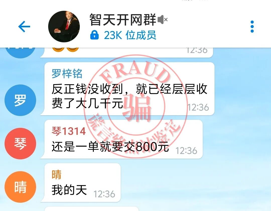 同时,极有可能以"智天金融卡启动费"、“开户费”、“所得税”、“交易税”、“保险费”等名义继续收割。