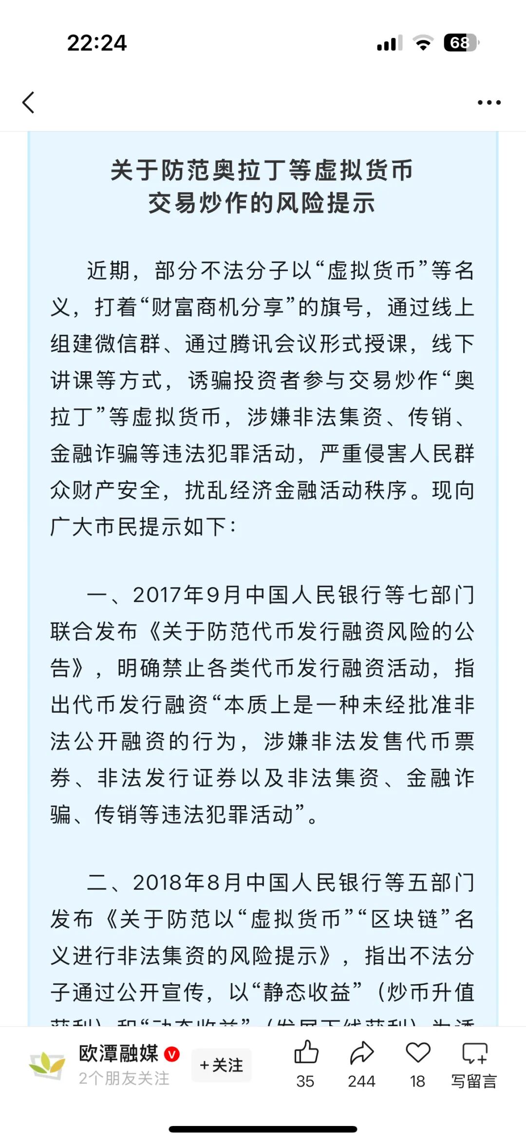 目前多地都发布了预警,加上其他项目都在跟奥拉丁抢人这也是导致此盘加速崩盘的一大原因,一旦没有共识,归零不再是不可能…