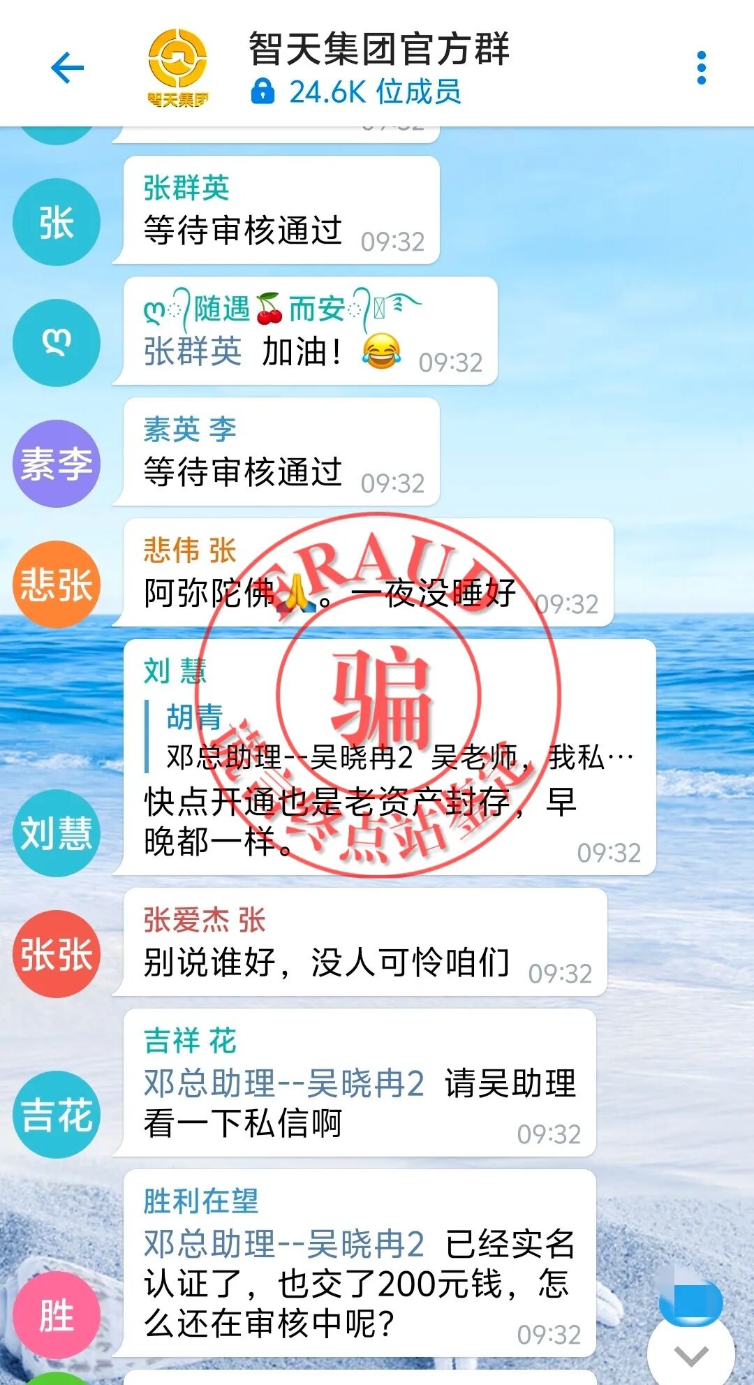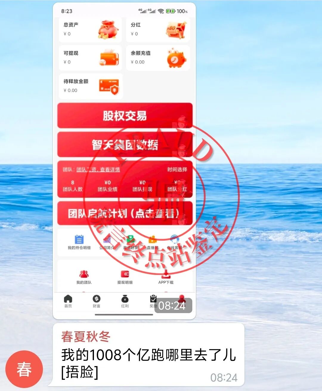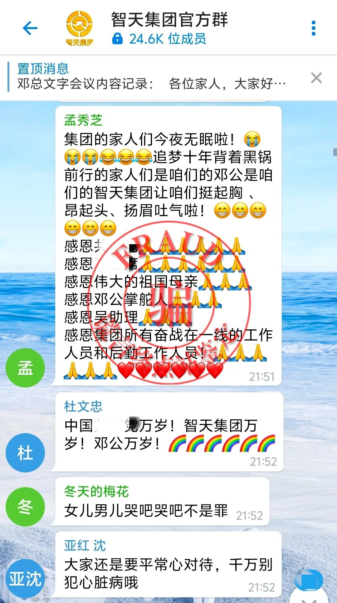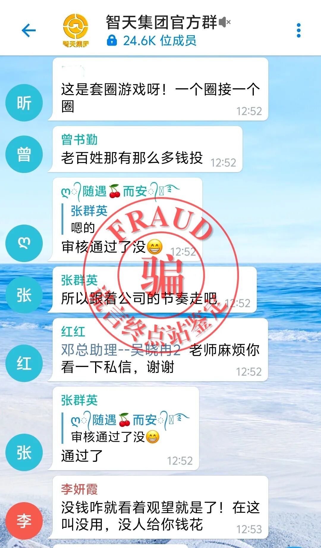 2025年11月15日,在一轮又一轮的超高收益、超短期产品的疯狂推销后,天家人们看着后台数字暴涨,等着发财之际,智天集团突然停止提现!来了一出关门打狗的好戏!这完全应验了谎言终点站的预测!