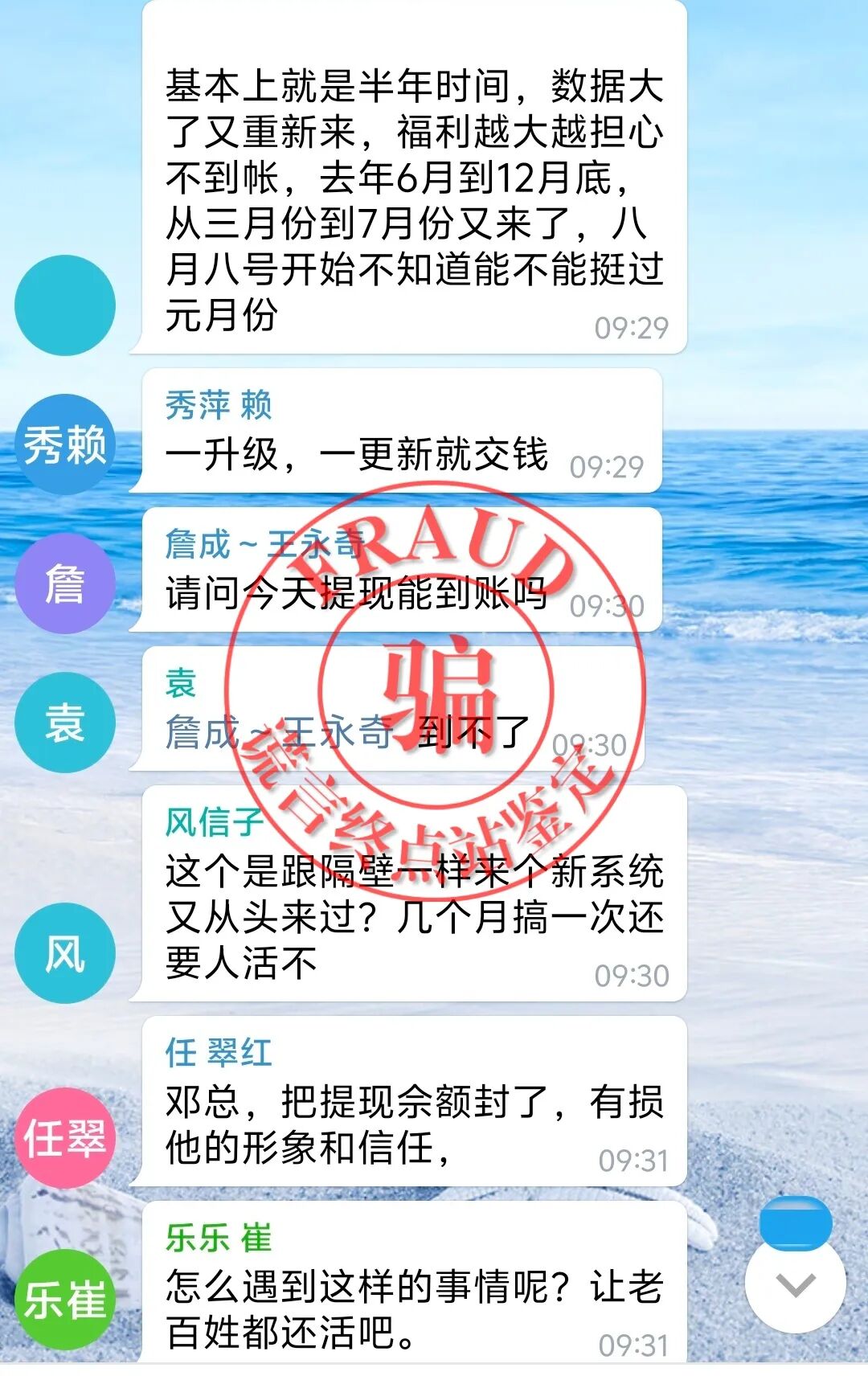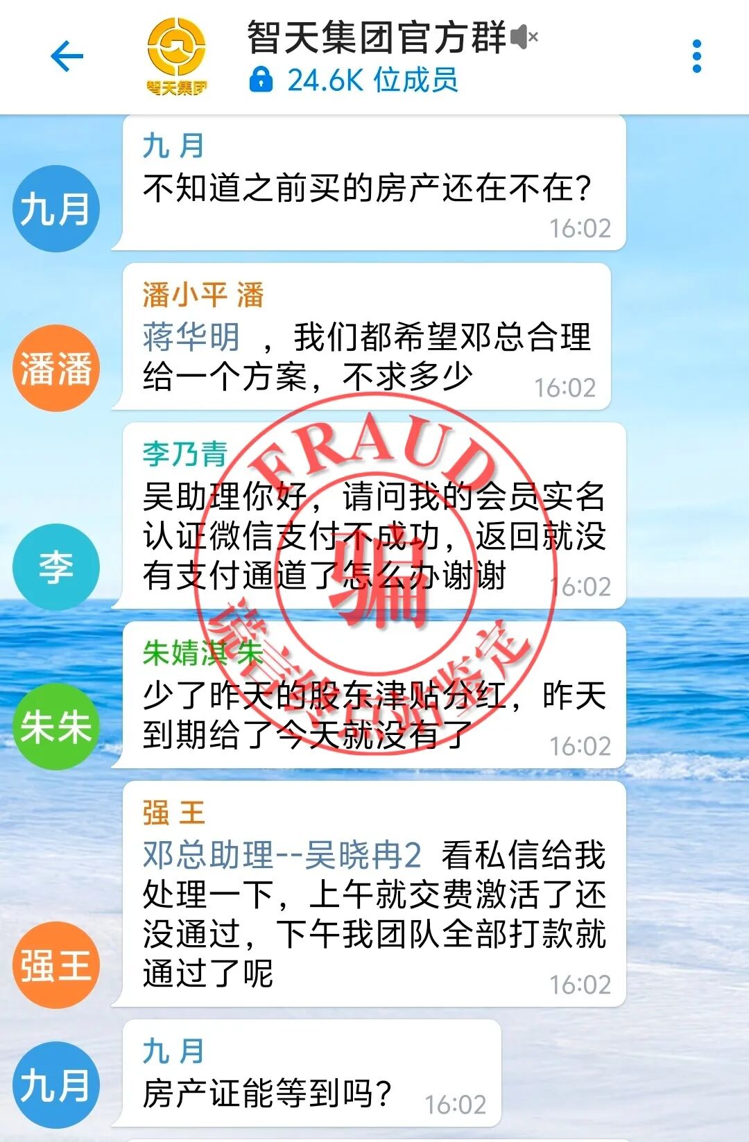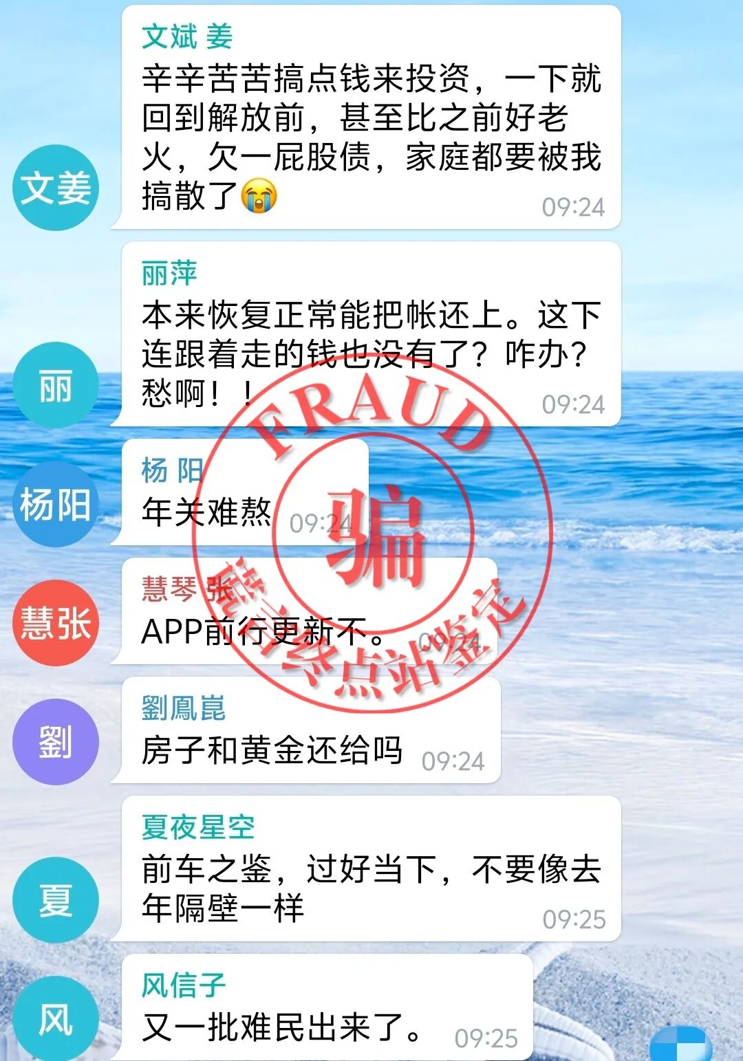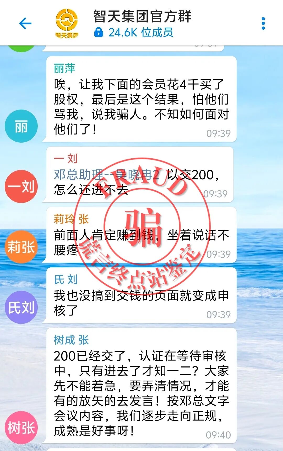 2025年11月15日,在一轮又一轮的超高收益、超短期产品的疯狂推销后,天家人们看着后台数字暴涨,等着发财之际,智天集团突然停止提现!来了一出关门打狗的好戏!这完全应验了谎言终点站的预测!
