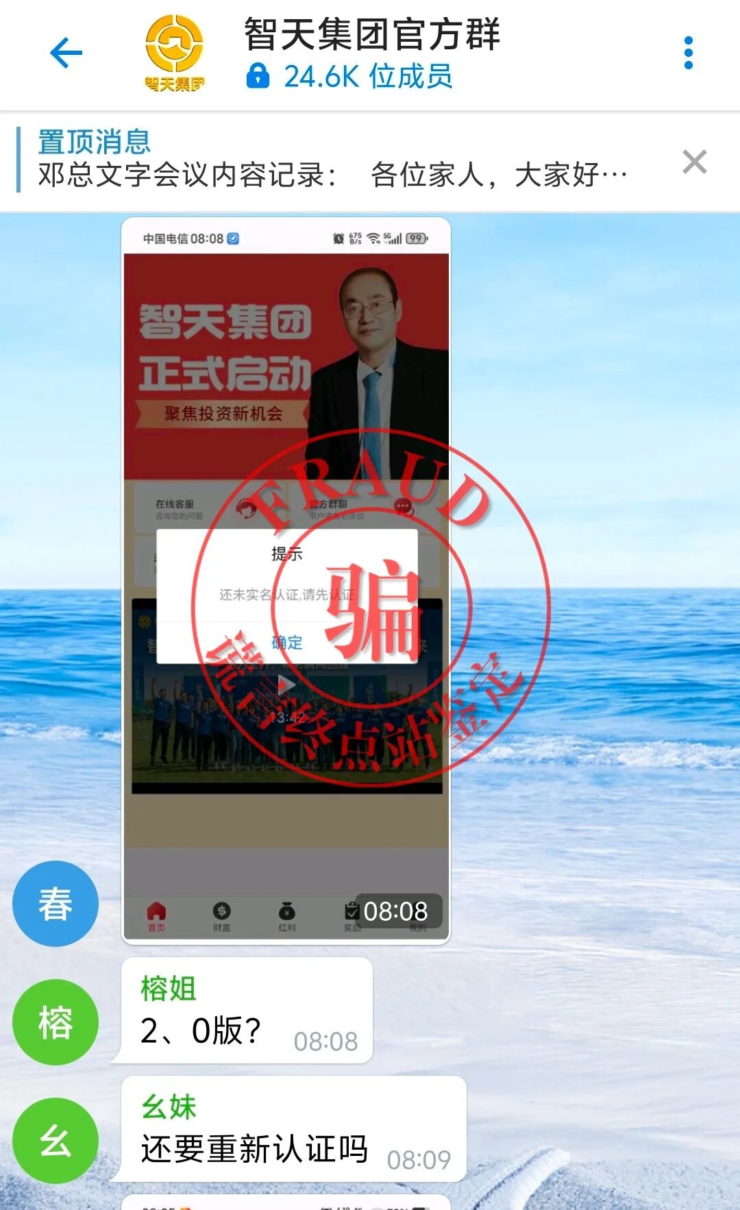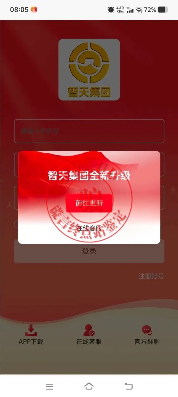 强制要求升级到第二期“智天国际集团”App,升级后就要交钱激活认证: