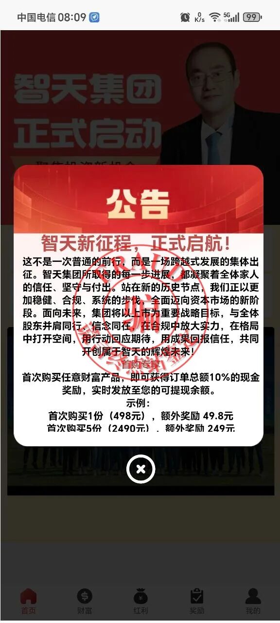 原来的“智天集团”App已无法进入,里面的几百亿“资产”已经归零。