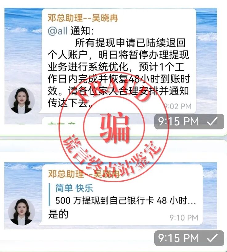 从2025年11月15日起,所有的“天家人”都在盼望着能提现到账。AI邓总一次次一言九鼎地表示,将在七天后提现、将在3天后提现,一次次吊着可怜的“天家人”的胃口。
