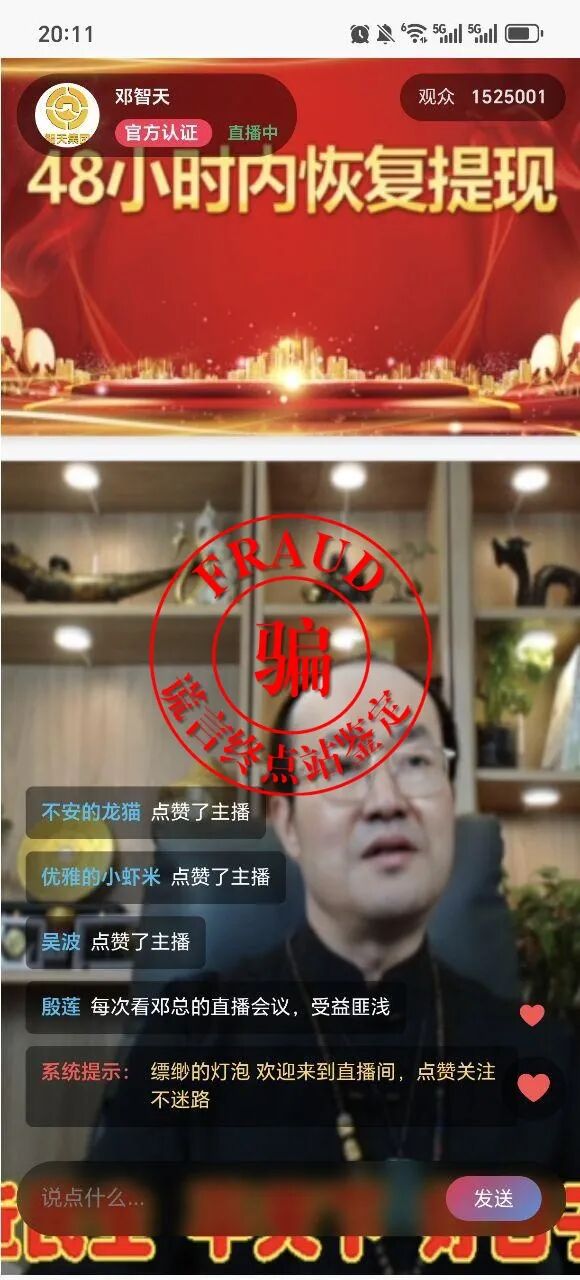 所谓的“邓智天”和“林曜”直播,是AI的!都是假的!上百万所谓观众数也是虚假的。
