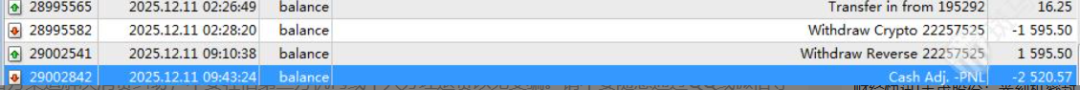 A某表示,自己是在英诺平台开户入金交易的,并且在该平台操作了2个月,之前都很顺利,顺利盈利了。于是在12月12日,申请提交了出金,后台显示被拒绝。并且账户无任何通知情况下直接被扣除2520美金资金。