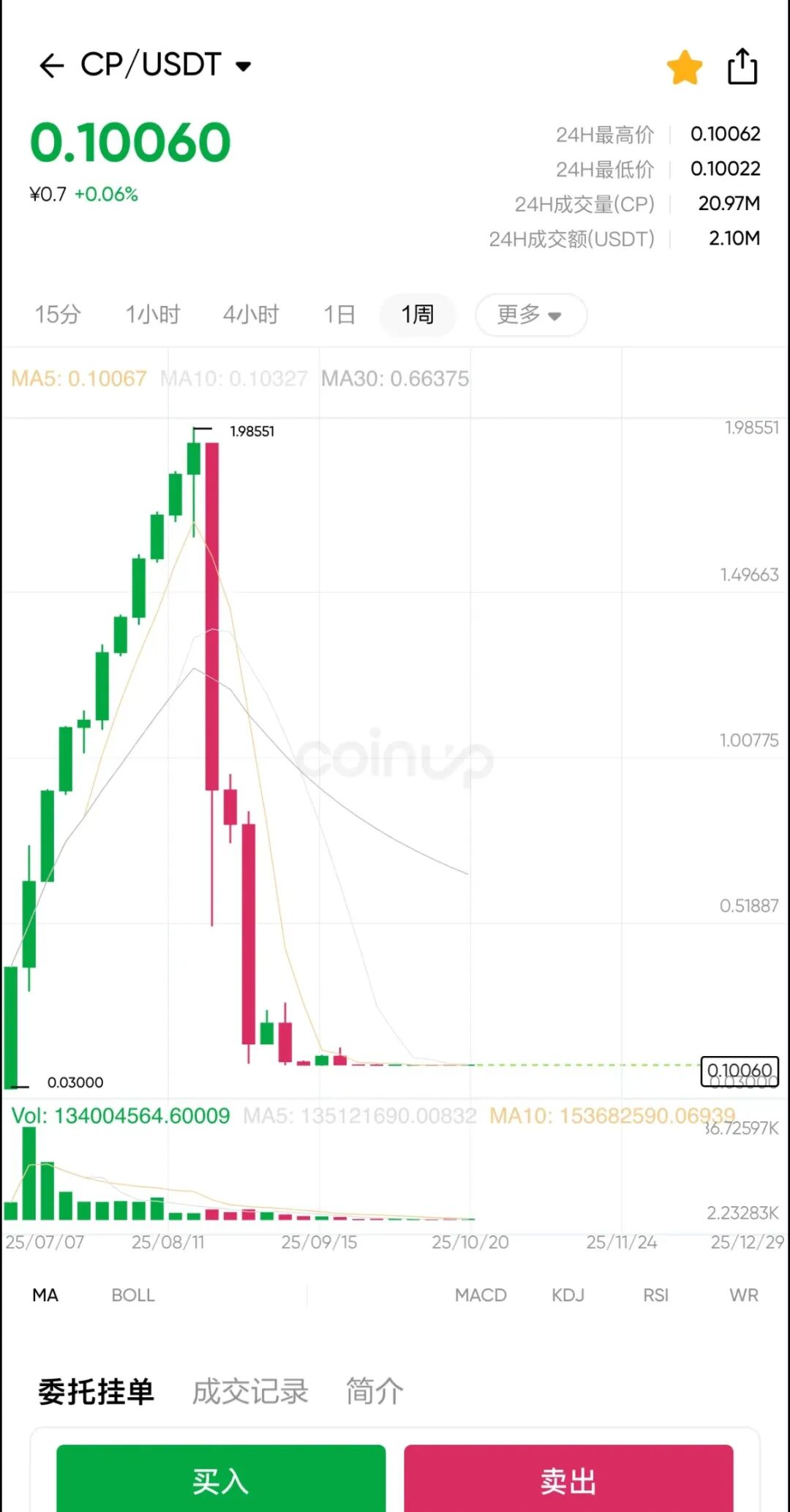 在 coinup 交易所里,通过 cp 玩诸如水母协议这类模式盘,购买 cp 节点等。倘若你没能在价格最高点套现离场,那么很可能就算复利计算 100 年,你的本金都无法收回。